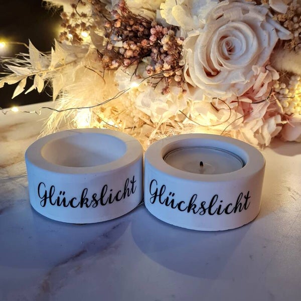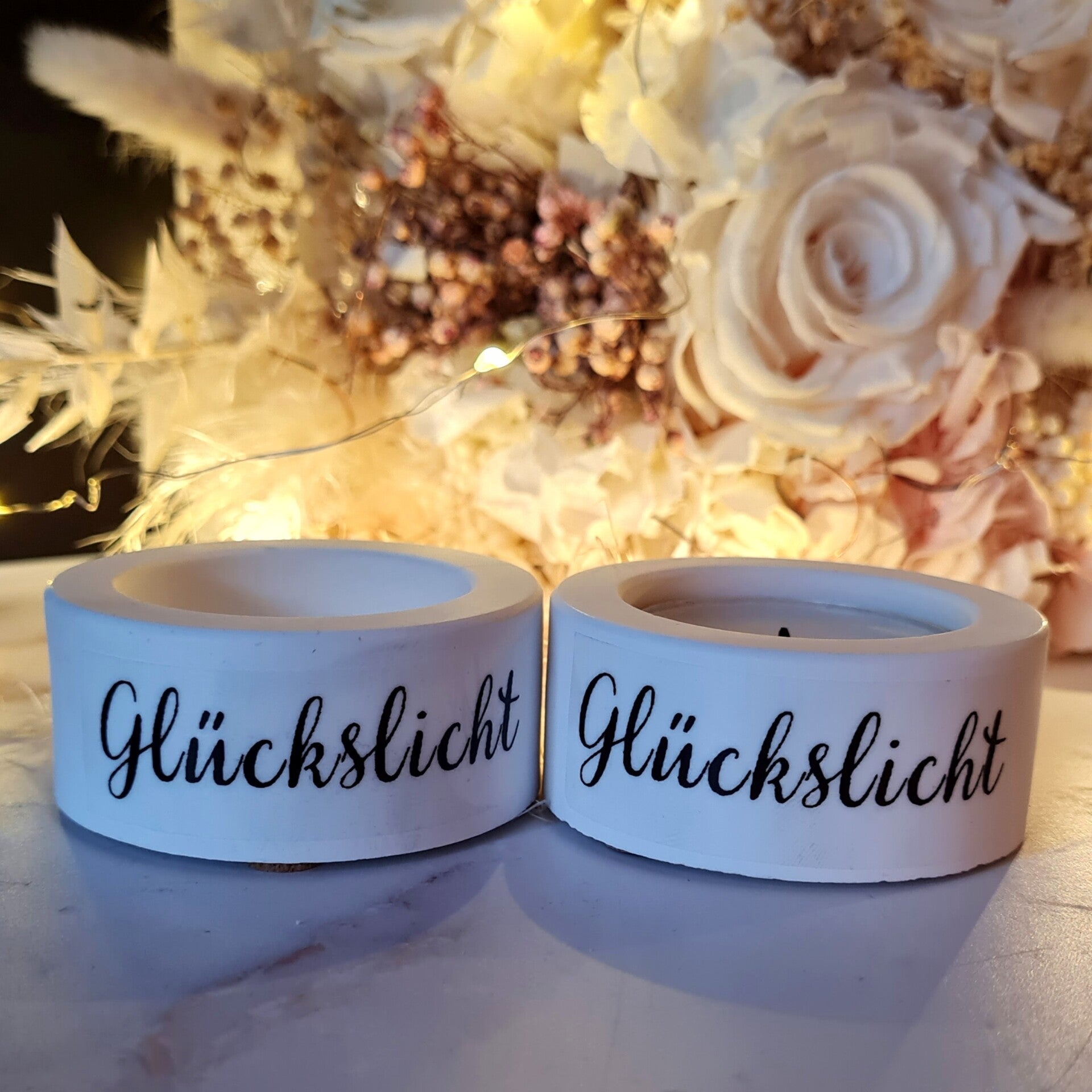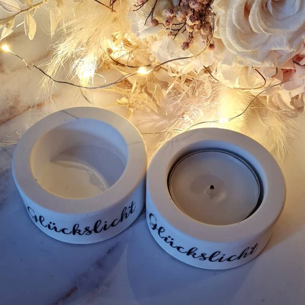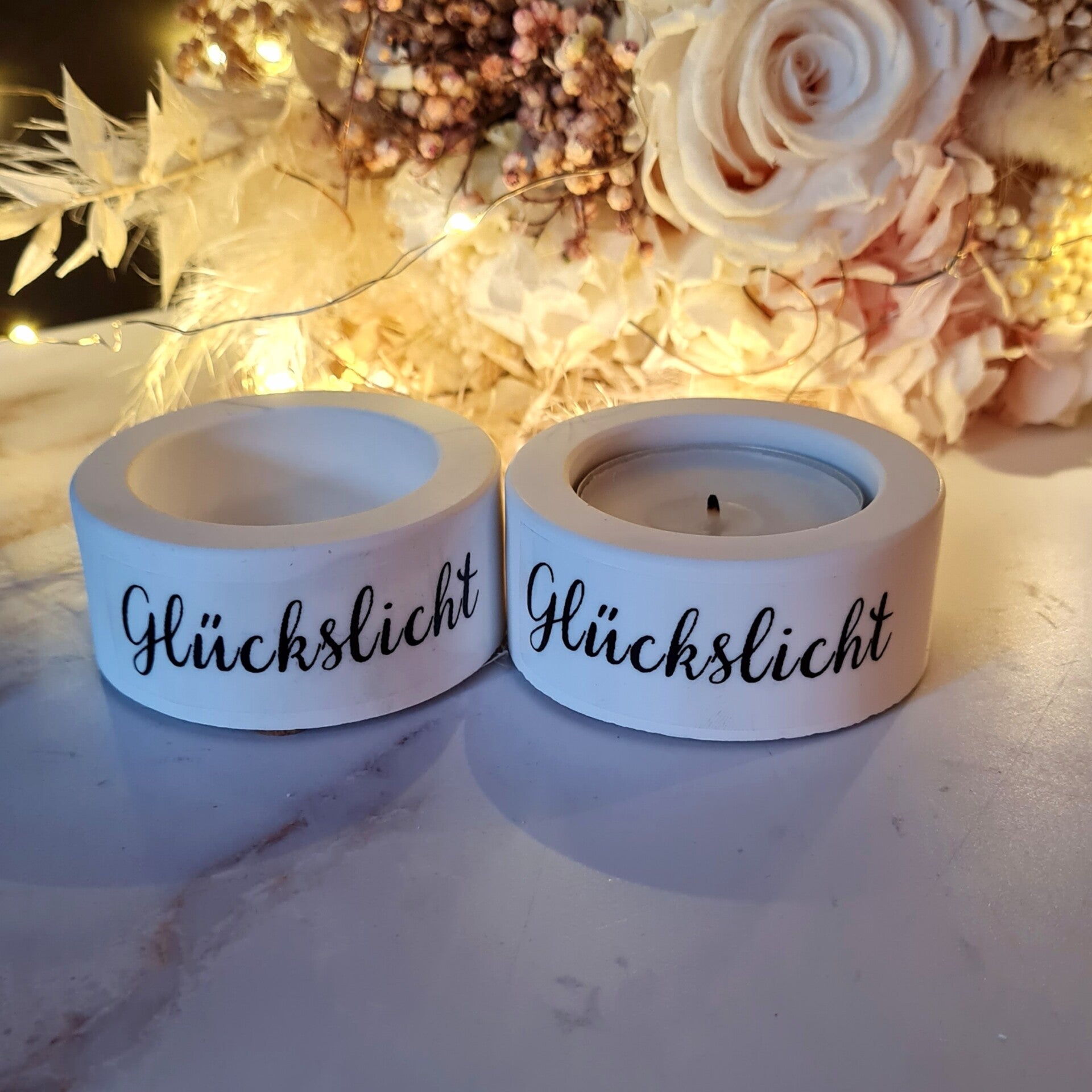 Handgegossener Teelichthalter „Glückslicht“ – modern, personalisierbar & liebevoll gefertigt