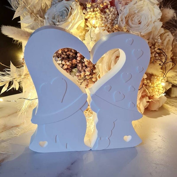 Ob als Hochzeitsgeschenk, liebevolle Aufmerksamkeit für die Partnerin oder den Partner, als romantische Tischdeko oder als süßer Hingucker in der Weihnachtszeit – dieses Wichtelpaar zaubert jedem ein Lächeln ins Gesicht.