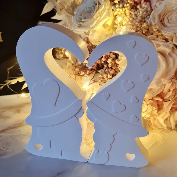 Bringe liebevolle Atmosphäre in dein Zuhause – mit unseren zwei handgegossenen Wichtel-Figuren, die zusammen ein Herz bilden.