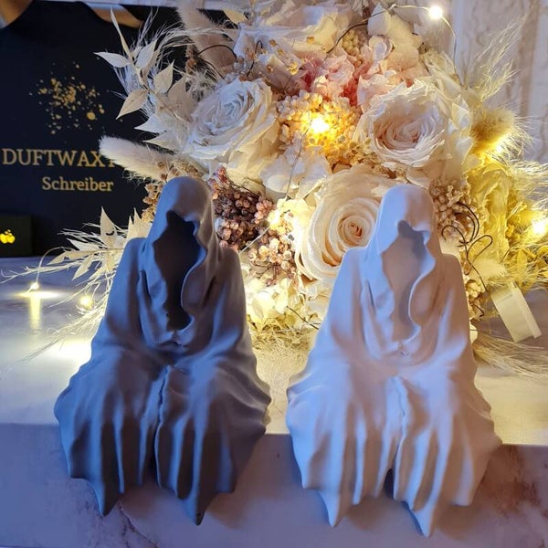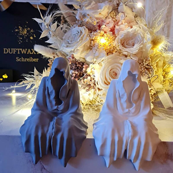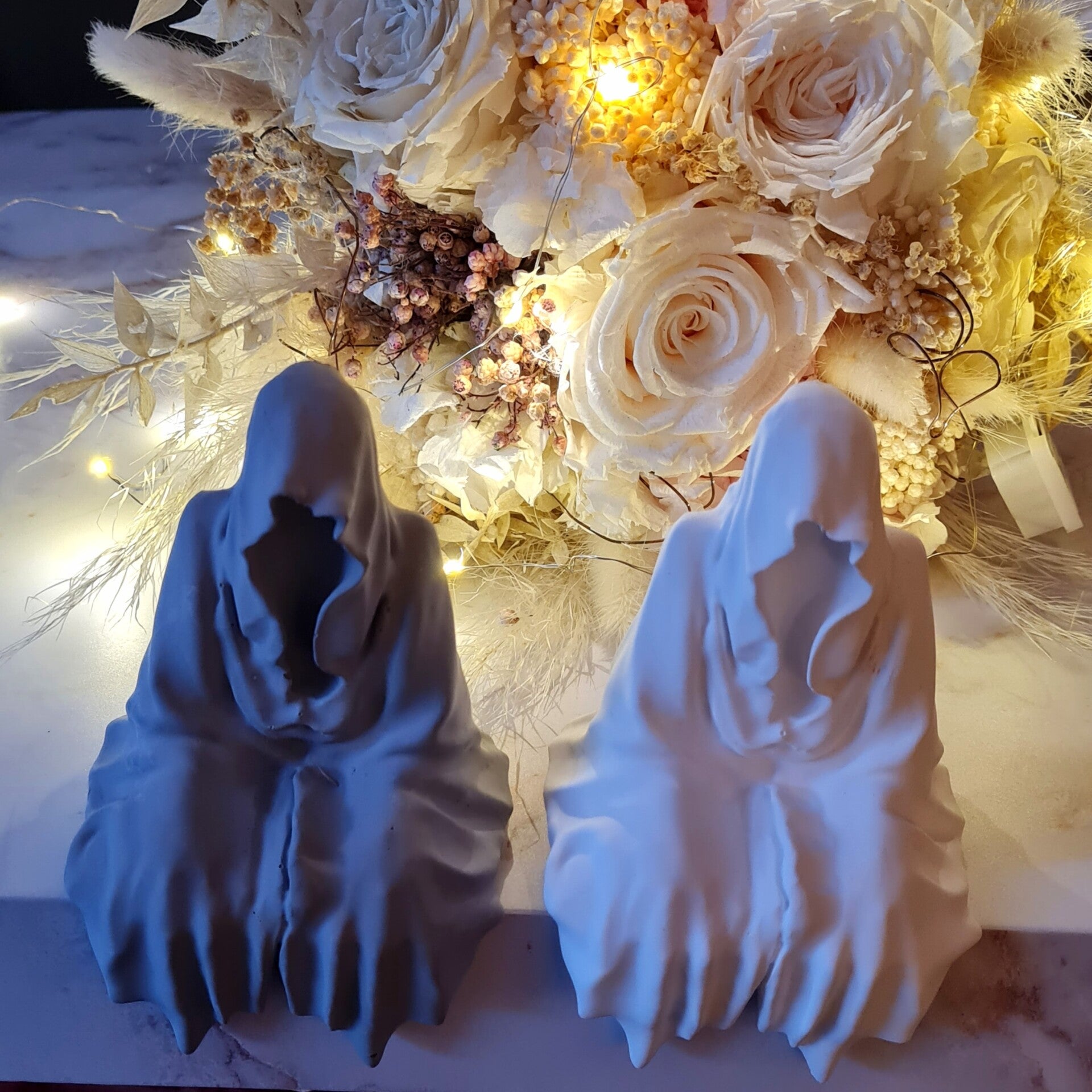Bringen Sie geheimnisvollen Charme in Ihr Zuhause mit unserem liebevoll handgegossenen Geist, der wie von Zauberhand auf Ihrem Regal oder Bücherregal zu schweben scheint. Jede Figur ist ein liebevoll gefertigtes Unikat aus hochwertigem, keramikähnlichem Gießpulver und verleiht Ihrem Raum eine mystische, aber charmante Atmosphäre, perfekt für alle Bookies.