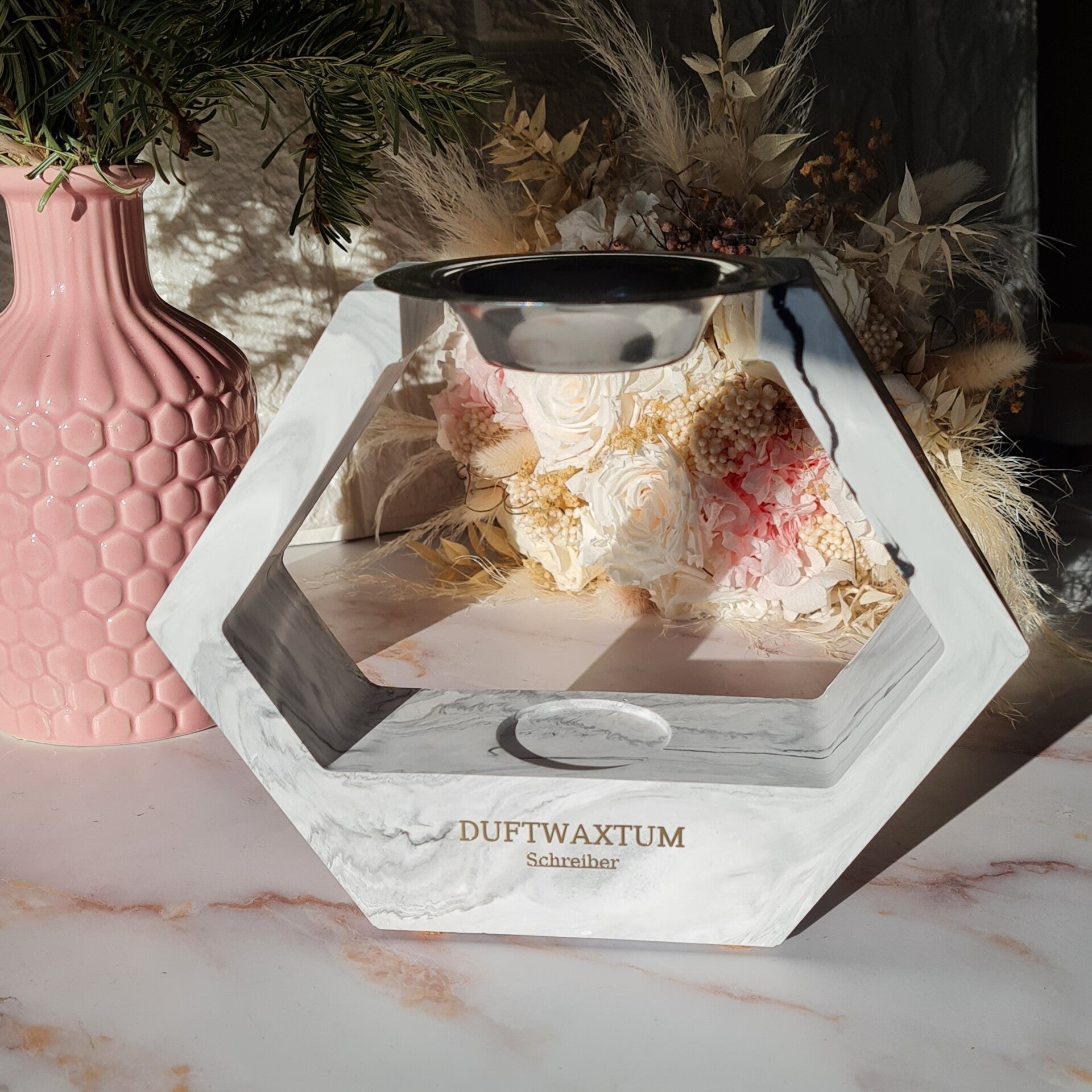 ✔️ Handgegossene Duftlampe (weiß oder Marmoroptik)