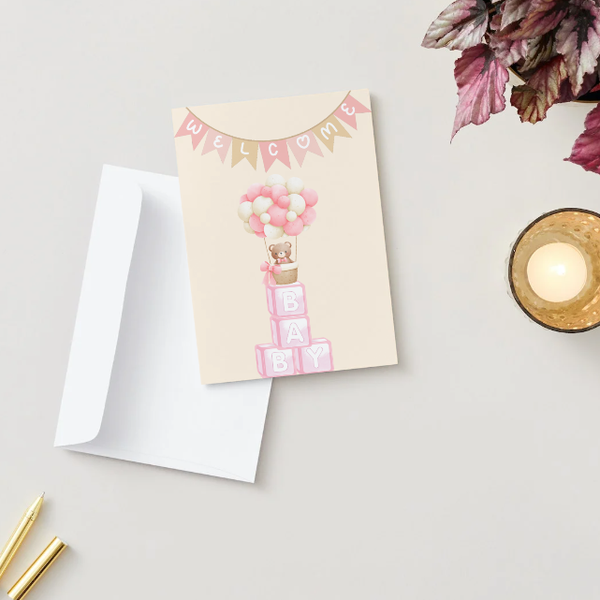 ✉️"Welcome Baby - beige, rosa" – Selbstdesignte A5 Klappkarte - personalisierbar