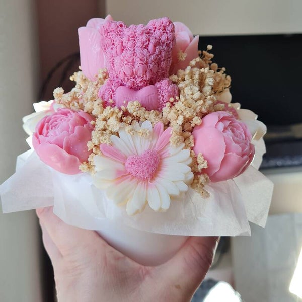 🌸 Handgegossener Wachs-Blumenstrauß Größe M